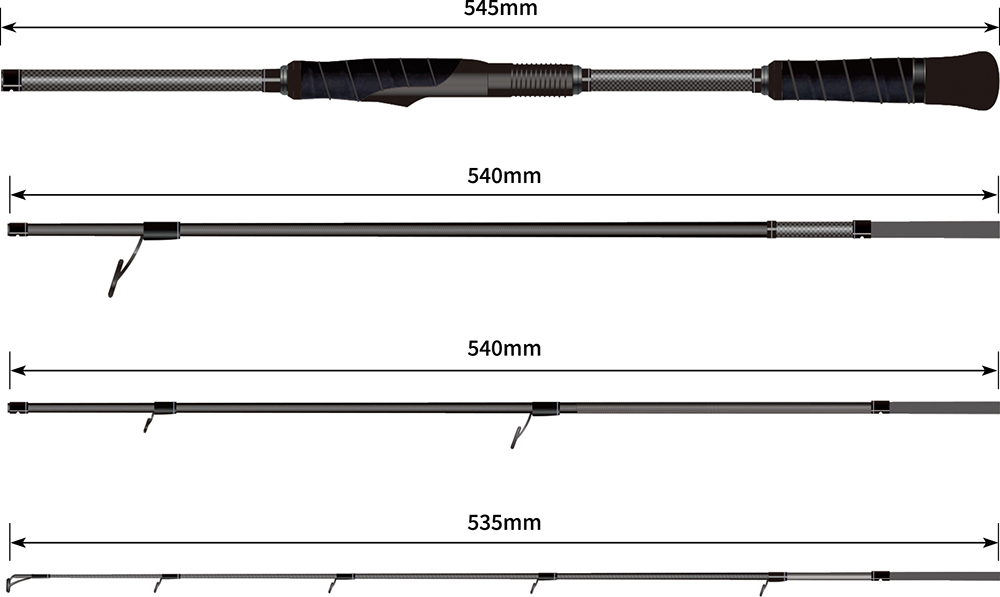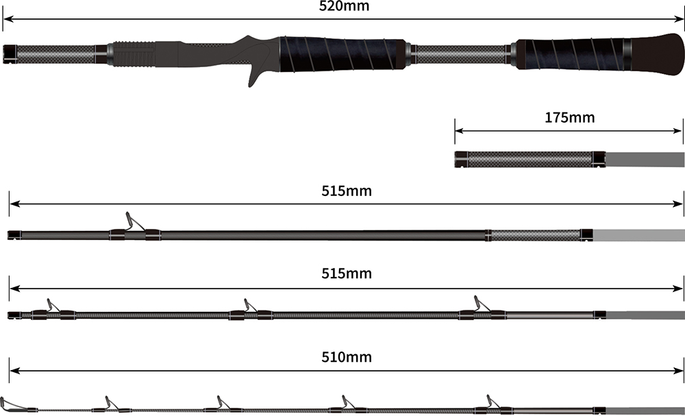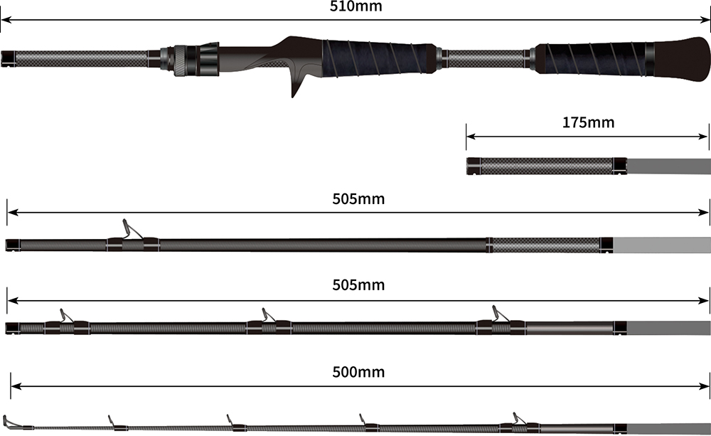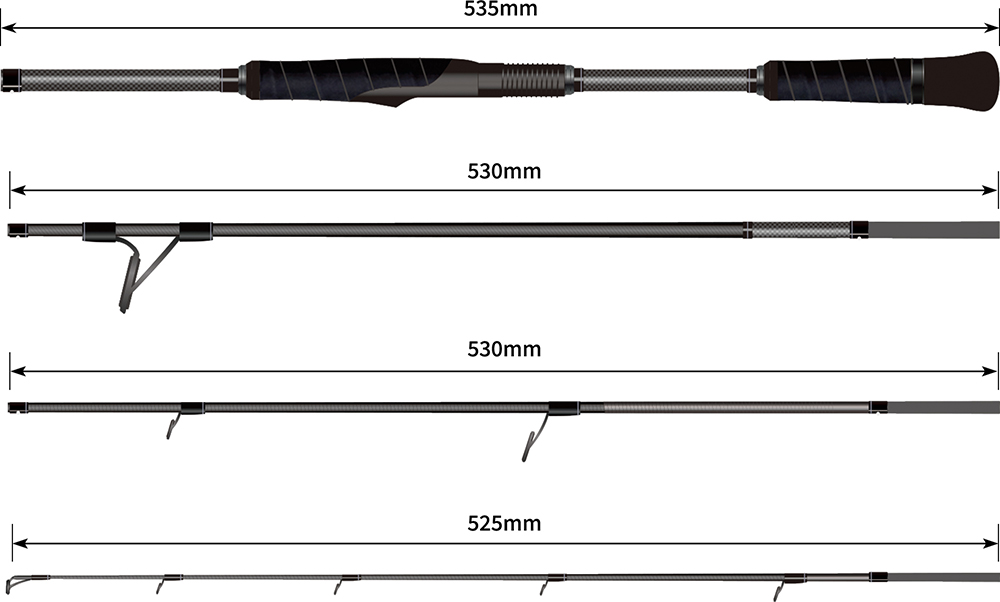 さらに可変式ブランクレングスシステムにより、手返しと正確なキャスト重視の6ft(ボートなど)からロングキャスト優先の6.6ft(オカッパリなど)へと簡単に切り替え可能。